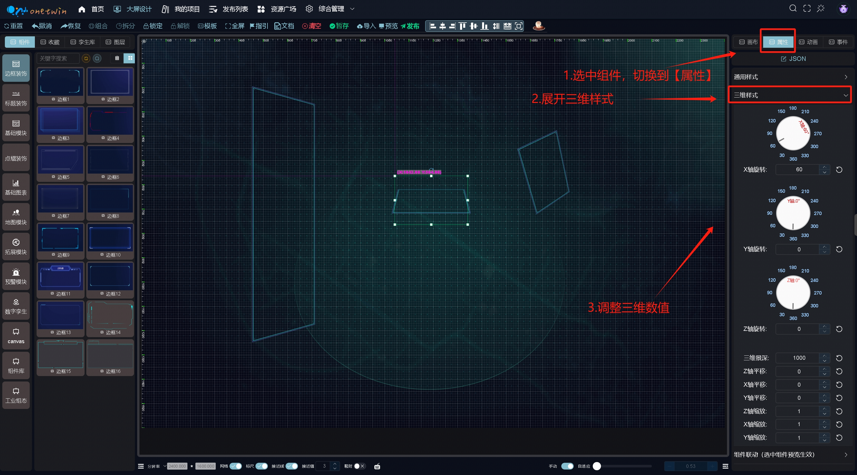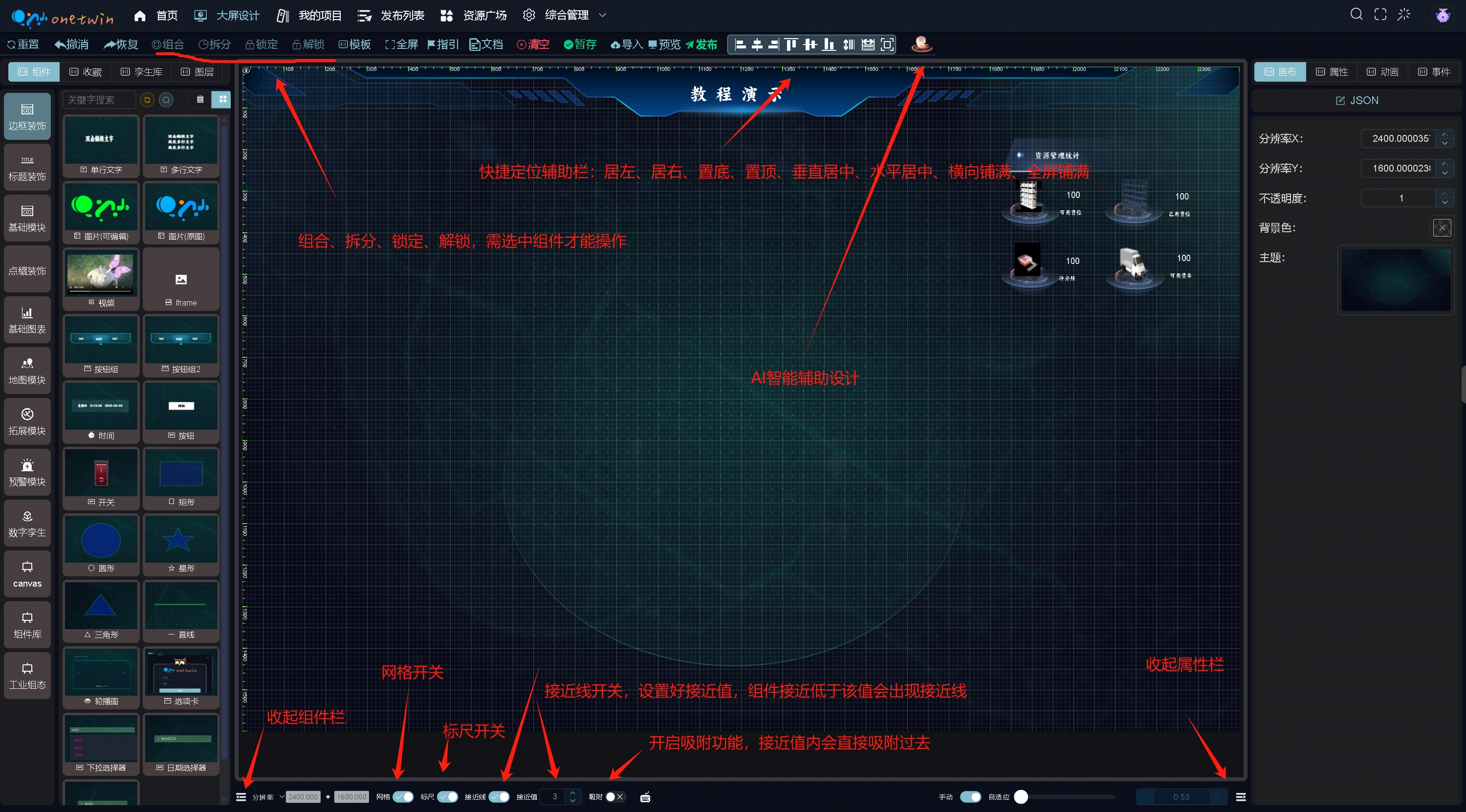 - 当拖动组件到画布之后,结合辅助工具栏将等大大提高效率