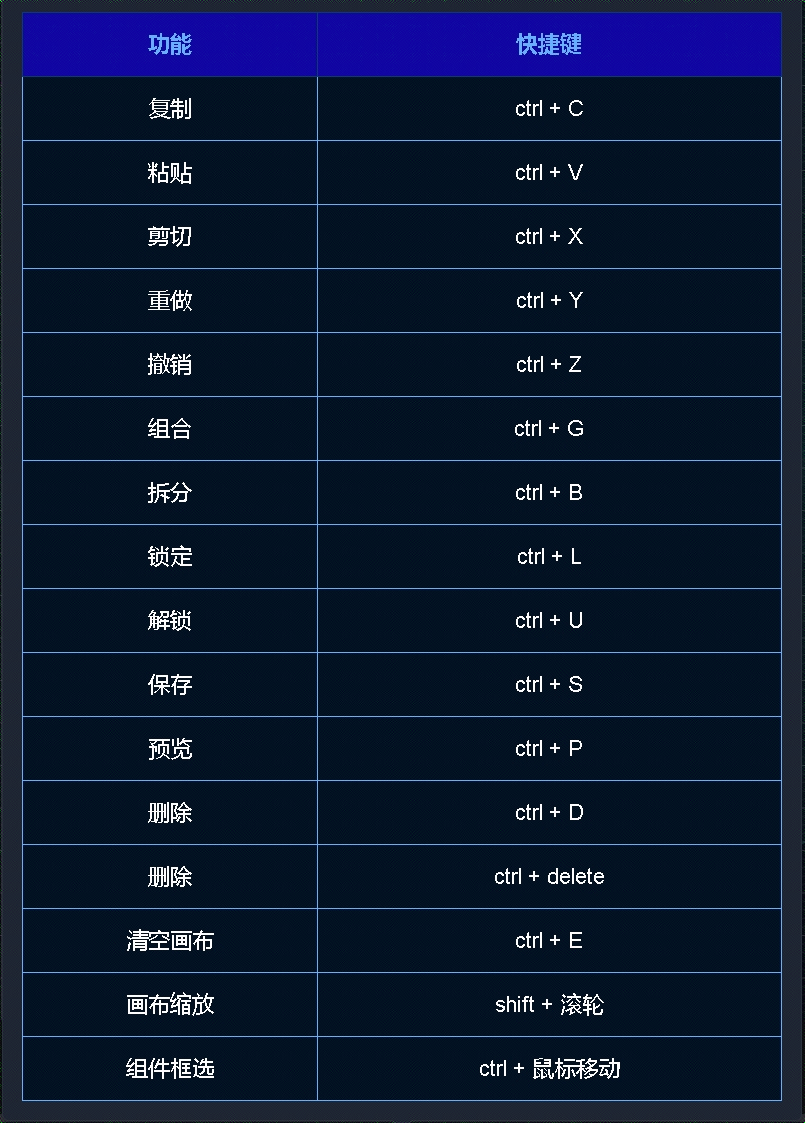 - 鼠标左键从画布空白处可以框选(按住 ctrl 键可忽略组件事件遮挡),框选完成可点击左上角即可完成组合