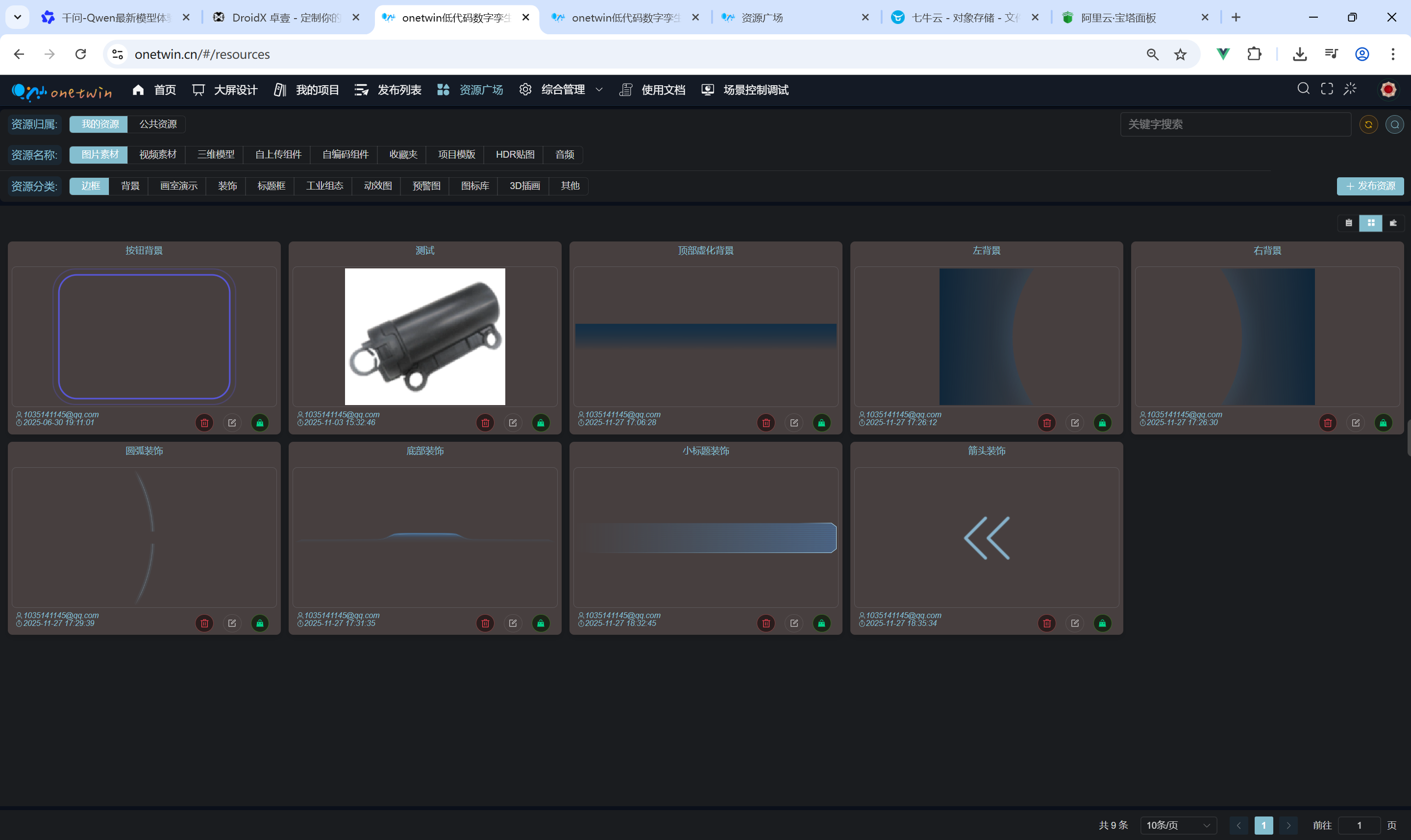 资源广场是平台中所有可视化资源的集中管理与共享中心,支持用户上传、分类、搜索、预览和发布各类设计素材,包括图片、视频、3D模型、边框、背景、装饰元素等。