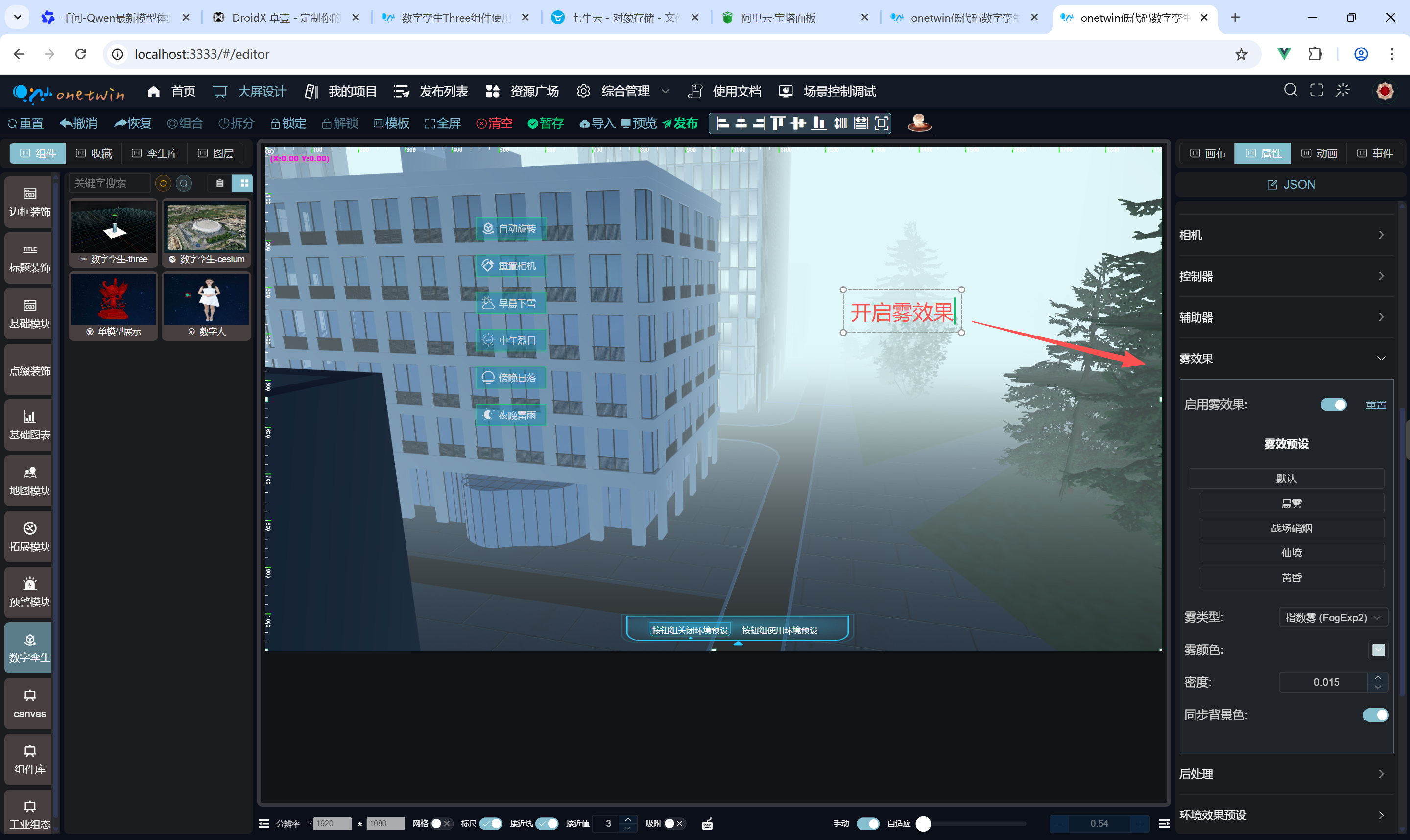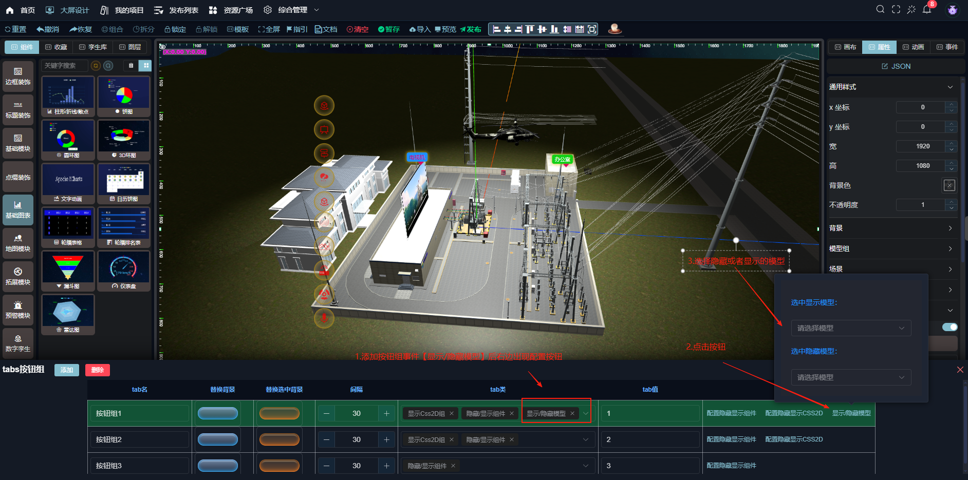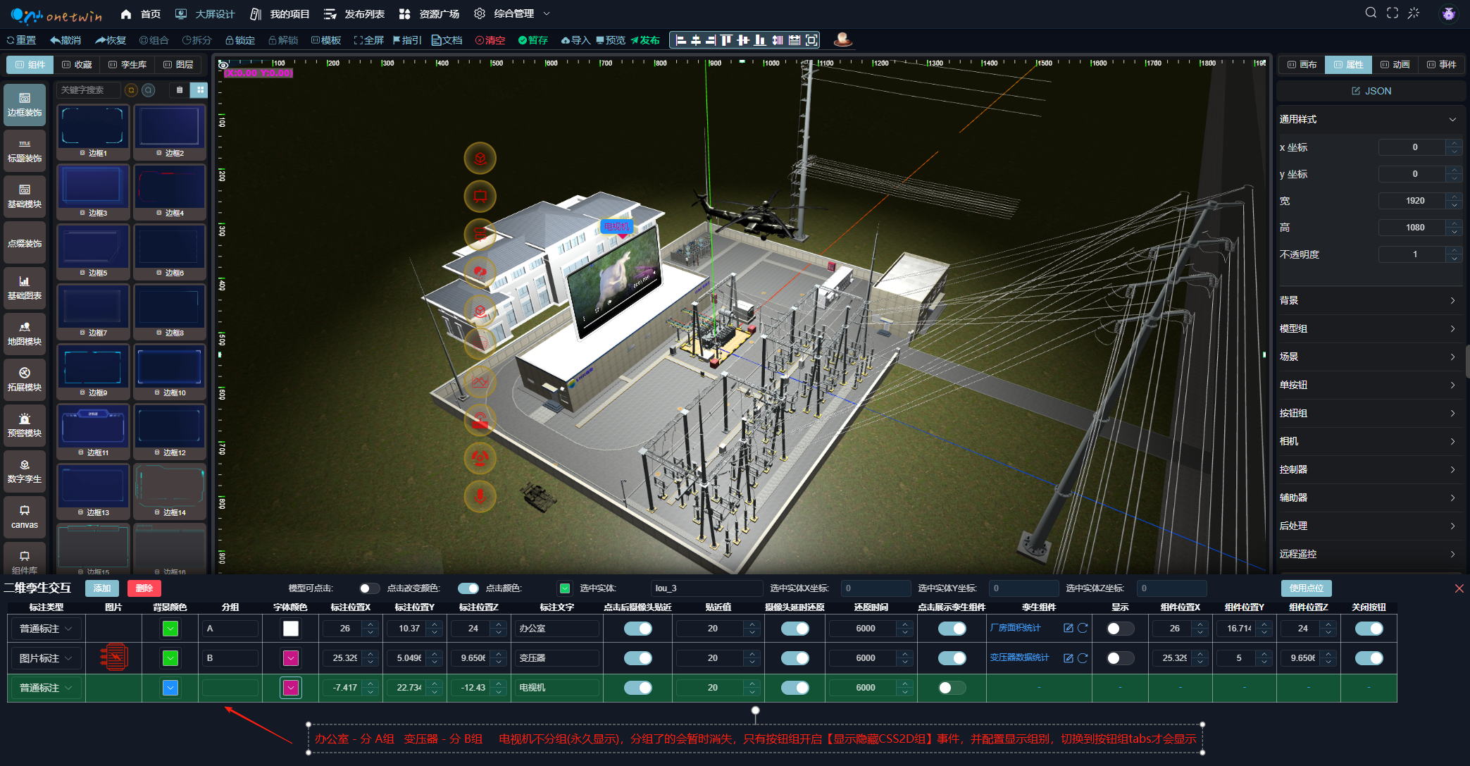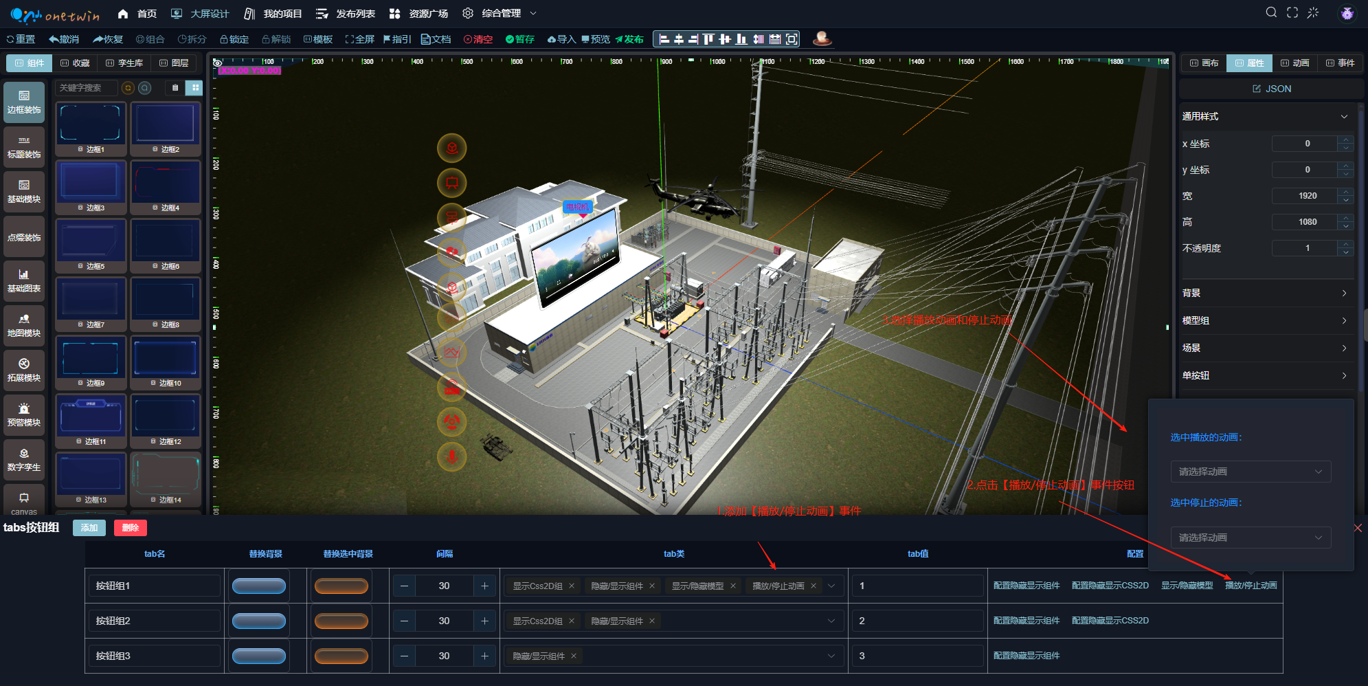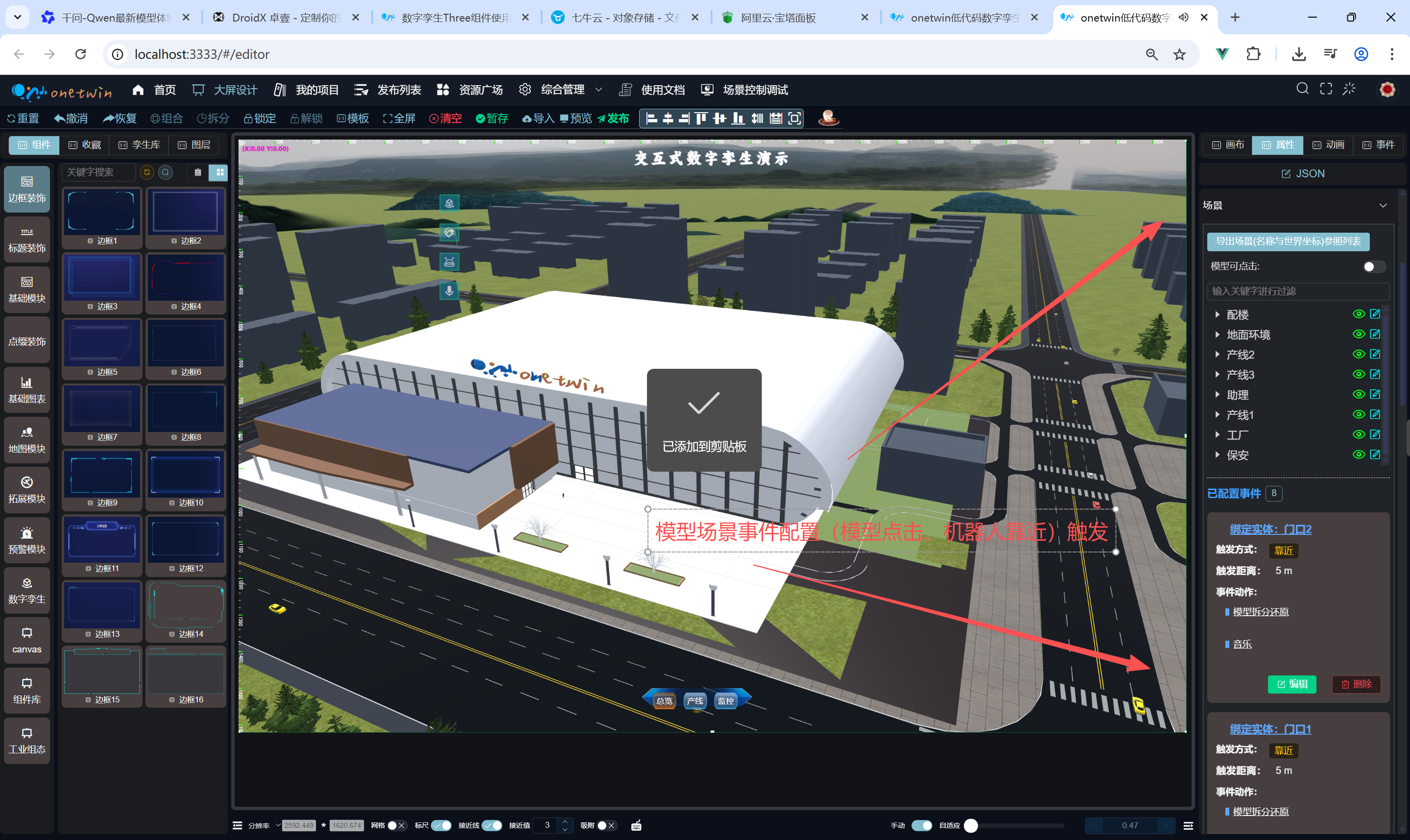 - 点击展示孪生组件功能是实现二维组件和三维场景融合在一起的重要功能