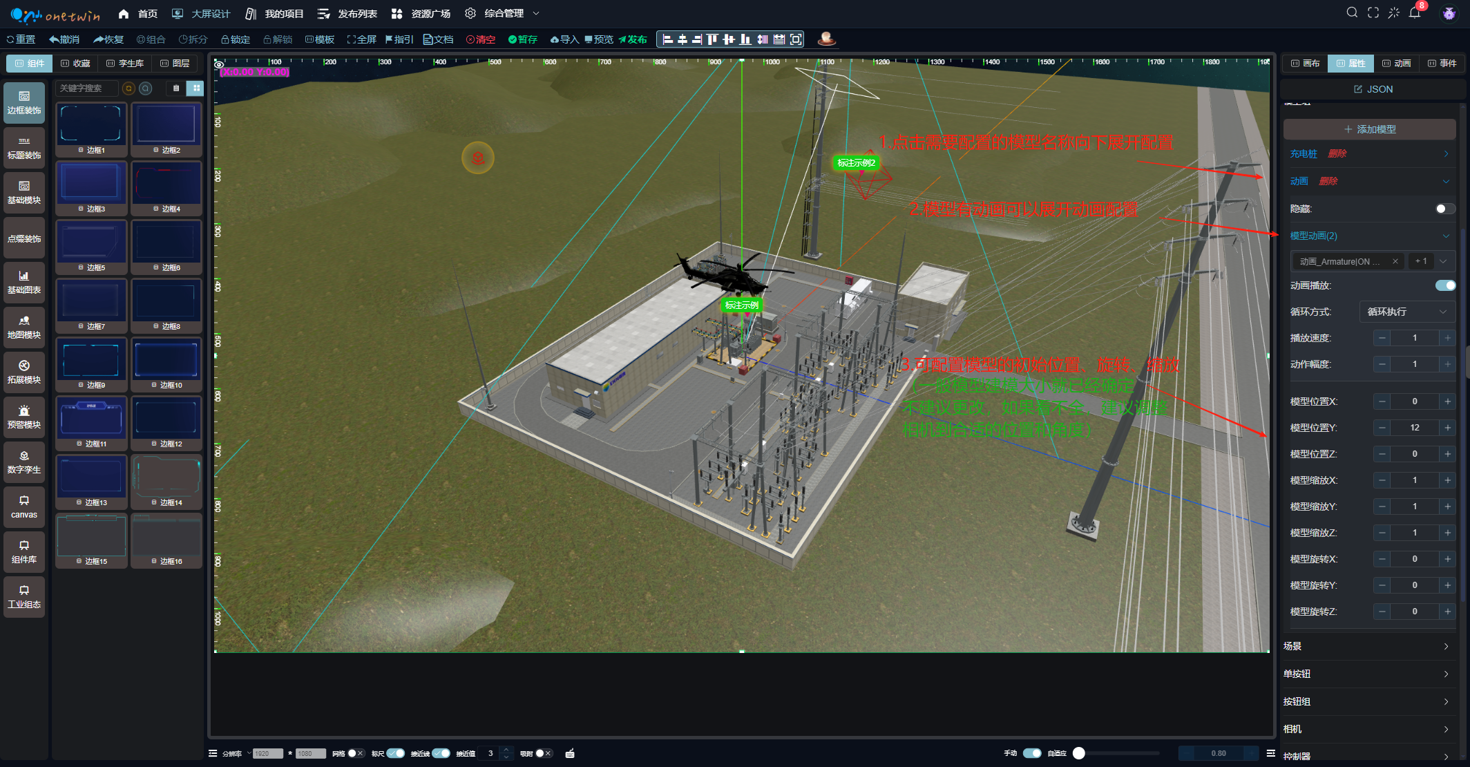 - 模型基本属性支持:隐藏显示模型,配置动画,位移,旋转,缩放