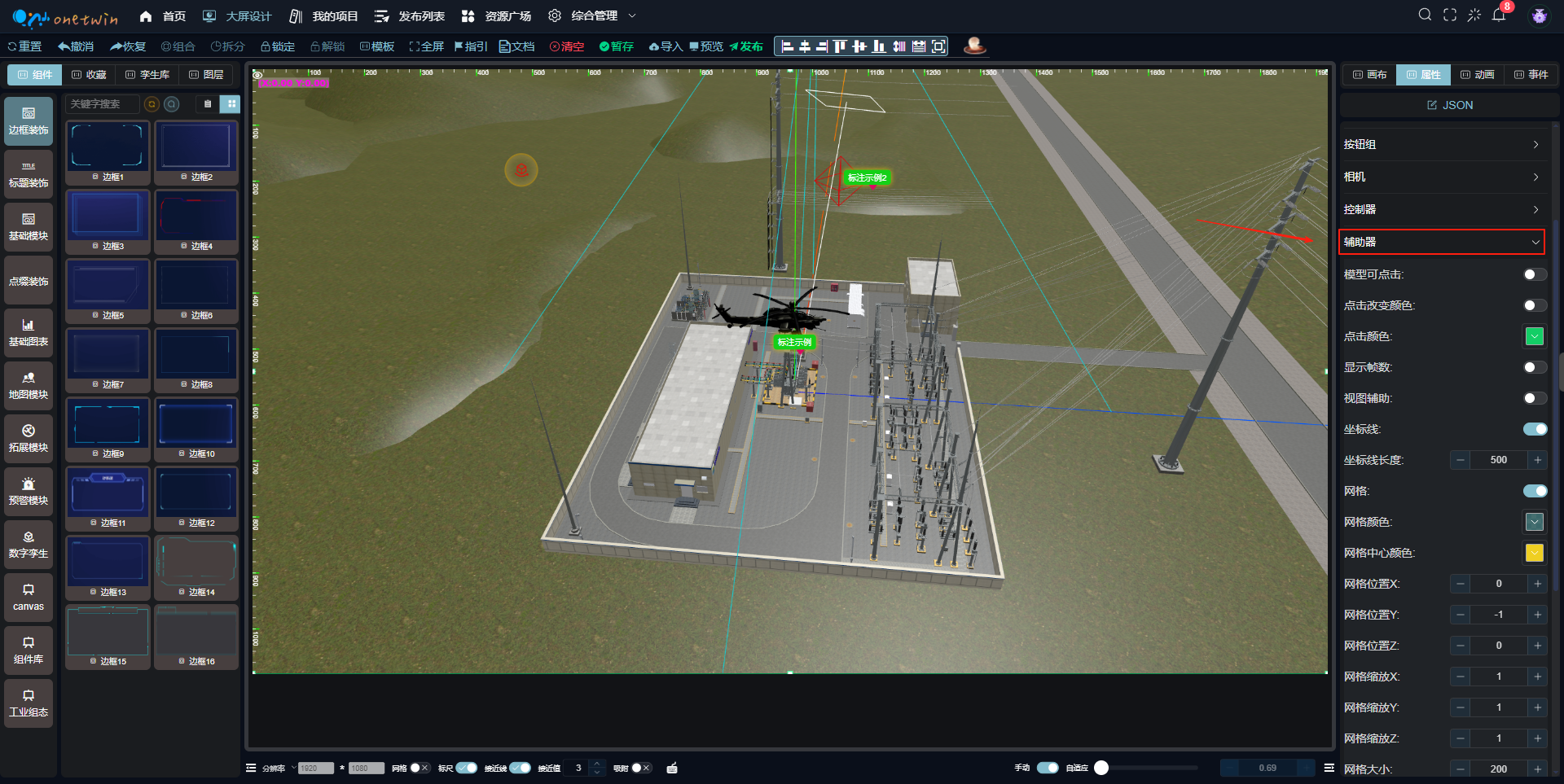 - 辅助工具有:模型可点击、模型点击变色、显示帧数、视图辅助工具、坐标线、网格
