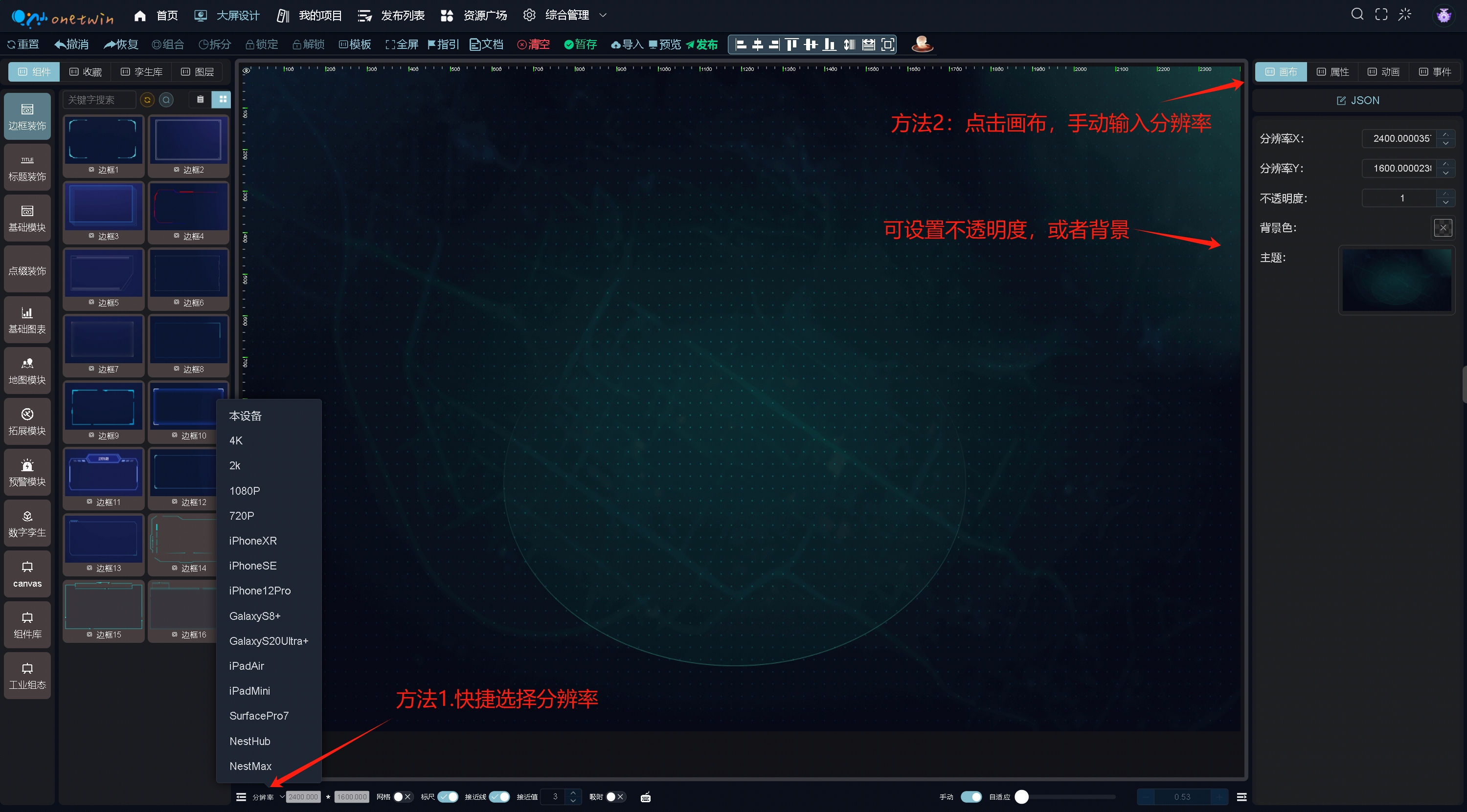 设置画布分辨率和背景